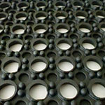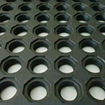 The perforated design allows water to flow through the mat while maintaining high traction for cows and workers. The open cell underside design allows water to flow through underneath for easy cleaning. This flooring is completely non-absorbant and does not retain bacteria. Mats are 1/2" thick and come in 3' x 3' sizes. Edge ramps are available in black and yellow color.